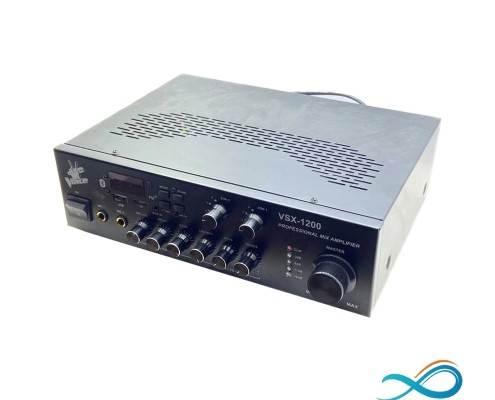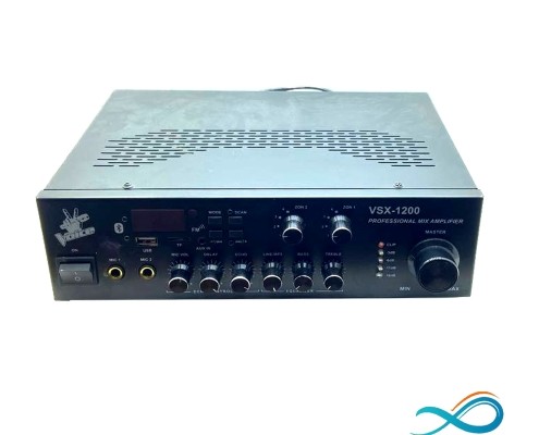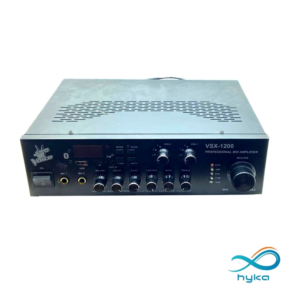 آمپلیفایر رومیزی مدل m2100 (vcx-1200) یک آمپلی فایر رومیزی پر قدرت می باشد که دارای دو خروجی ولتی پر قدرت 50 وات می باشد که قابلیت قطع و وصل کردن هر یک از خروجی هاست ( دو زون) و برای فضاهایی دوتایی مانند دوبلکس بسیار کاربردیست و میتوان موسیقی یم قسمت را قطع کرد.