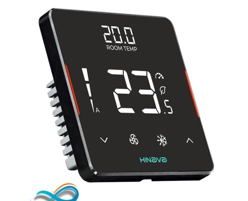 کلید ترموستات لمسی هیناوا یکی از شیک ترین، مجهز ترین و جذاب ترین کلید های موجود در بازار هست که تماما در قوطی ها سنتی بلک یا بست با همان سیم کشی سنتی قابل اجرا می باشد و شما می توانید ان را به تمام فن کوئل های 3 دور سقفی یا زمینی متصل بکنید. شایان ذکر است که حتی در بعضی موارد می توانید این کلید هوشمند خوش ساخت را به 2 فن کوئل به صورت مستقیم و همزمان وصل کنید به صورتی که 2 فن کوئل متصل به صورت همزمان خاموش یا روشن شود.